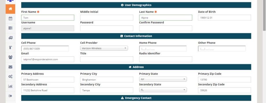Each user has an associated profile which lists his or her demographic and contact information. Additionally, the user has a section which allows administrators to track the user’s time with the agency, Provider History.